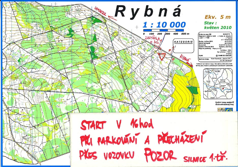 | 16.5.2011 | 2.kolo OL: shromaždiště v lese na odbočce na Rybnou n/Zd. z hlavní silnice Vamberk-Žamberk (mapka), mapa Rybná, 1:10000. Při parkování a přecházení vozovky buďte opatrní! Start v 16:00! |